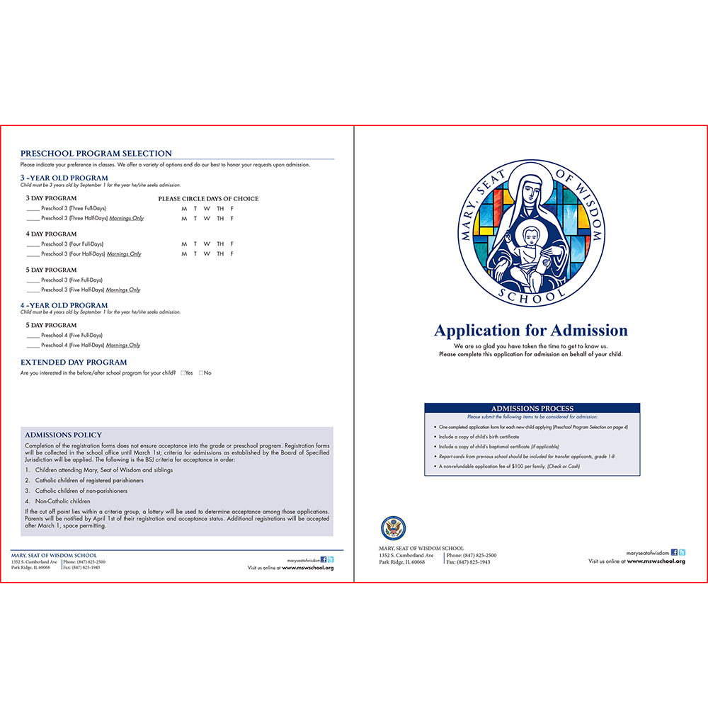 MSW – Mary Seat of Wisdom – Enrollment Application